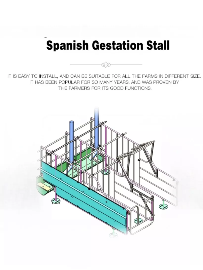Deba Brothers® è un produttore professionale di bancarelle di gestazione spagnole in Cina. Le nostre stalle di gestazione spagnole sono caratterizzate da un design intuitivo, sono ampiamente applicabili agli allevamenti di suini di tutte le dimensioni e offrono una durata eccezionale con materiali di prima qualità e pregevole fattura. Ben accolto dagli allevatori di tutto il mondo, questo prodotto è stato completamente verificato per le sue prestazioni stabili e l'elevato rapporto costo-efficacia.